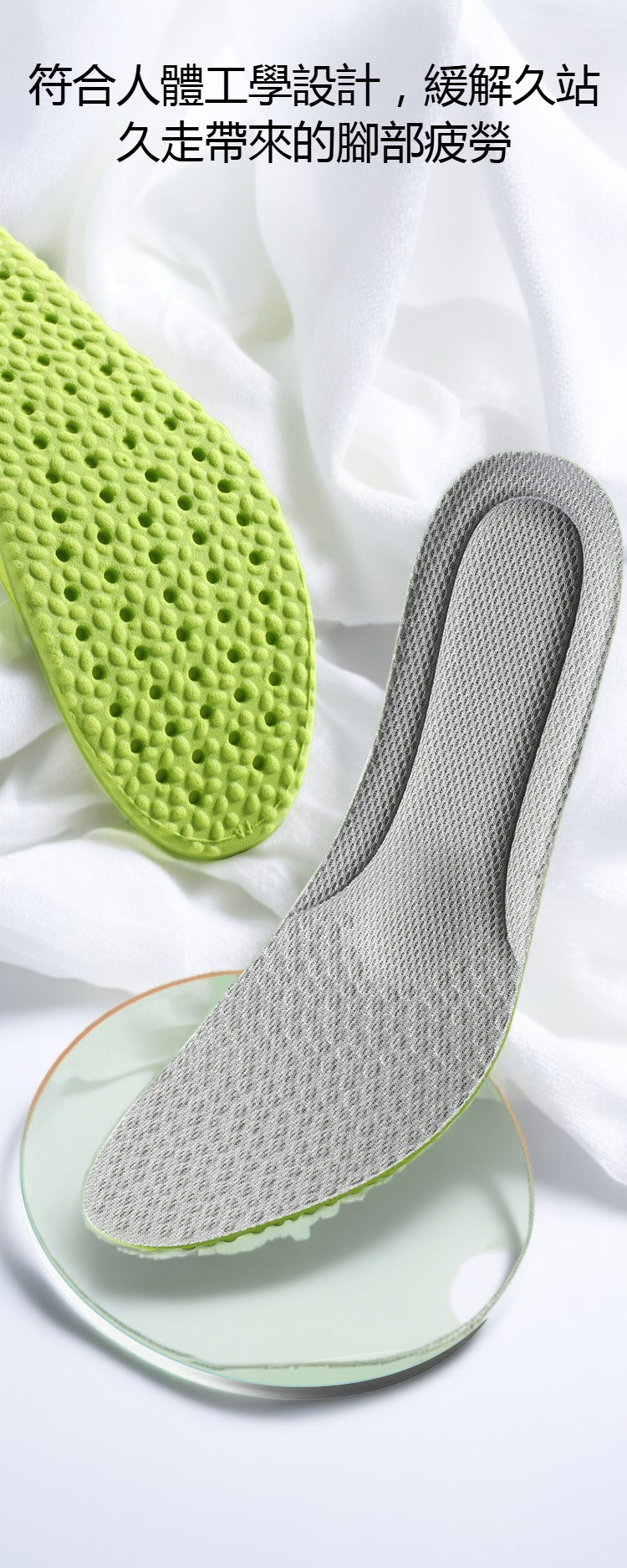 艾草成分有效除臭,軟彈材質舒適貼合,適用多種鞋款,透氣不悶熱,長效保持足部清新。